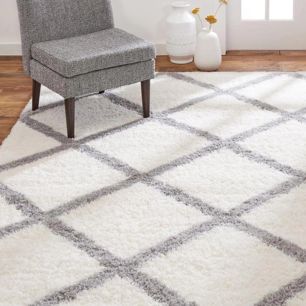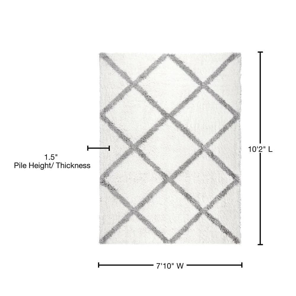 With the Home Dynamix 8 ft. x 10 ft. Area Rug, you can bring a unique look to any setting. This rug has a modern style, bringing a trendy twist to your living area with a fresh, contemporary element. It is made with stain-resistant fabrics and features fade-resistant materials. Designed with elements of ivory, this rug will tone down your decor. It has a trellis print, creating a fresh vibe that resembles window panes. With a 100% microfiber design, this loomed rug is an extremely durable option for your home. It includes a plush pile, offering a comfortable surface for your feet to rest. This rug has a shag texture, adding a soft and fluffy touch that will bring unparalleled comfort and coziness to your space.
