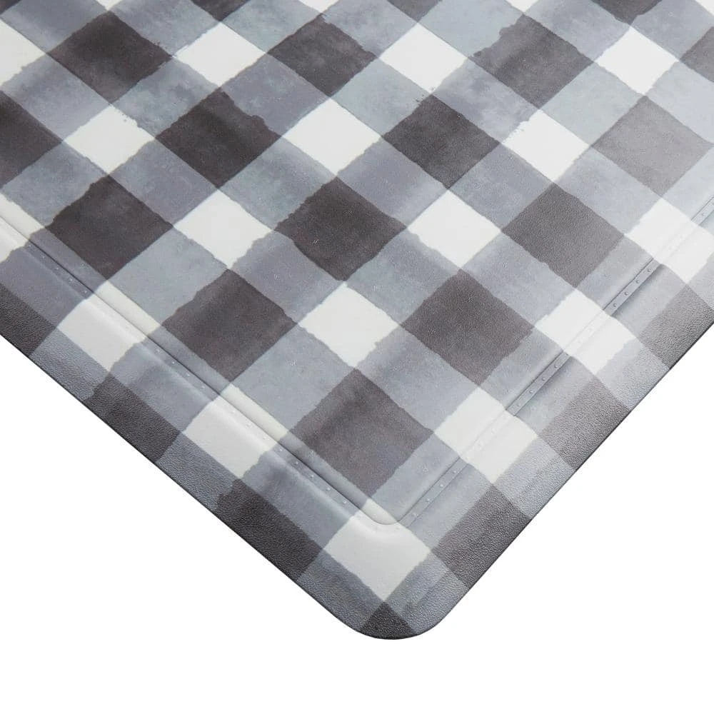- BUFFALO CHECK DESIGN: The Cat Cora Printed Embossed Gentle Step kitchen mat has a home friendly buffalo check design with farmhouse charm.