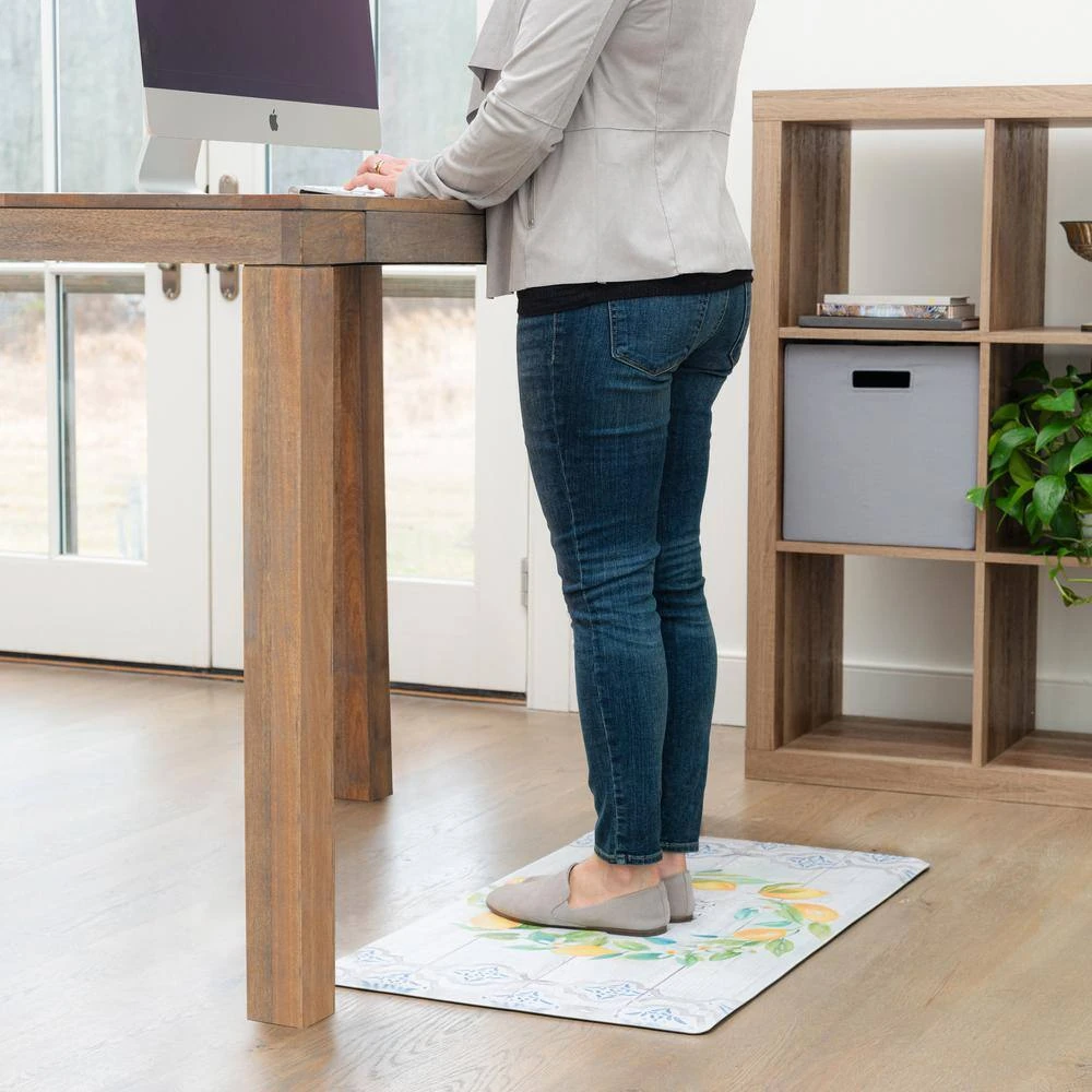 Add freshness to your decor with the Cozy Living Lemon Wreath Gather kitchen mat by SoHome. Featuring a Gather Together design with a charming lemon wreath, this anti-fatigue kitchen mat will add a welcoming feel to your decor. Finished with a beautifully embossed textured top, these mats are constructed of durable polyvinyl with a smooth beveled edge that provides an anti-slip surface.