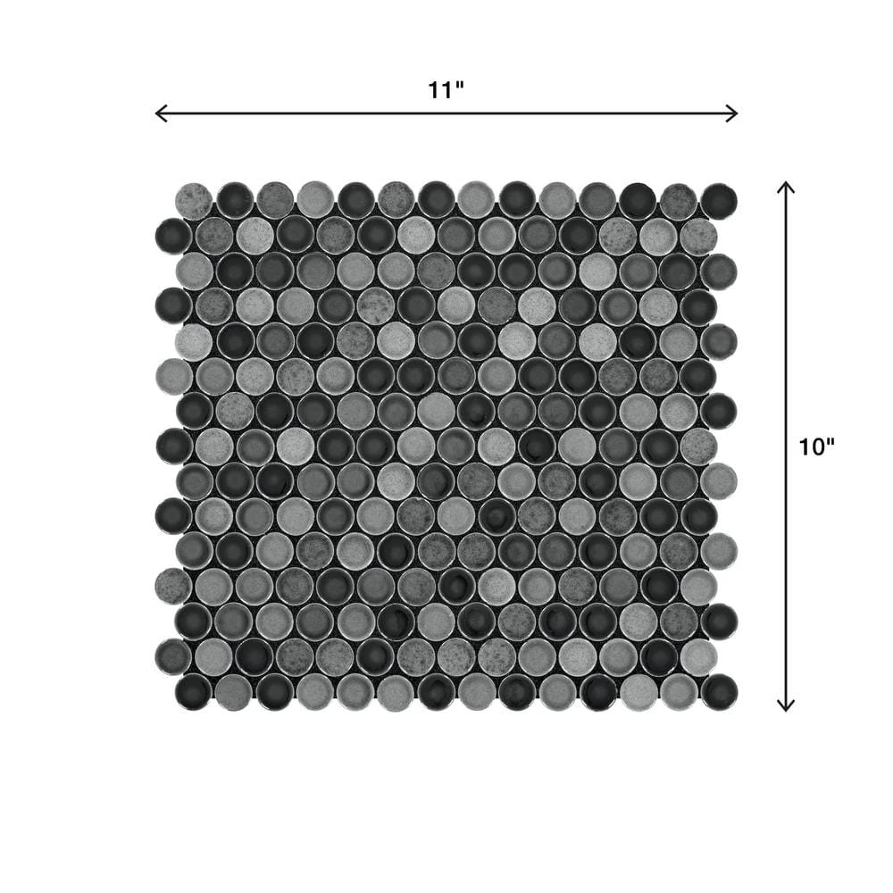 - Actual size: 11-3/4 width x 10-11/16 in. length x 5/16 in. thick. 1 in. diameter penny round mosaic pieces