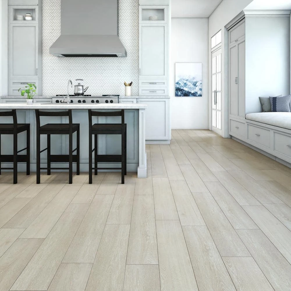For the beautiful look of wood without the worry, there’s Emerson Wood Ash White, from Daltile. These large-format (8 in. x 48 in.) wood-look porcelain tiles are nearly indistinguishable from the real thing, combining the great look of ash with the versatility, performance, and durability of porcelain tile. Unlike wood, these floors are waterproof. So you can have a real wood-look anywhere in your home-even the bathroom. Which means your style no longer has to be limited by your location.