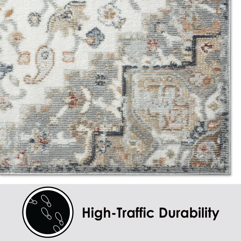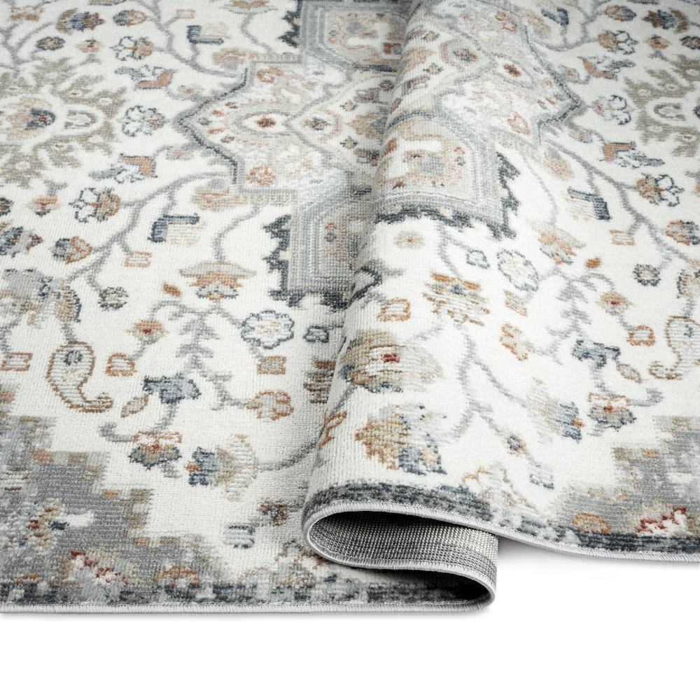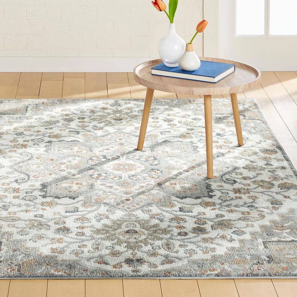 The Home Dynamix Helen Valeria area rug offers a perfect combination of classic style and bohemian chic flair for your space, with its damask medallion design in neutral shades of ivory and blue. This power-loomed rug offers cozy comfort underfoot in any space. The durable fibers are stain and fade-resistant, making this area rug ideal for high-traffic areas.