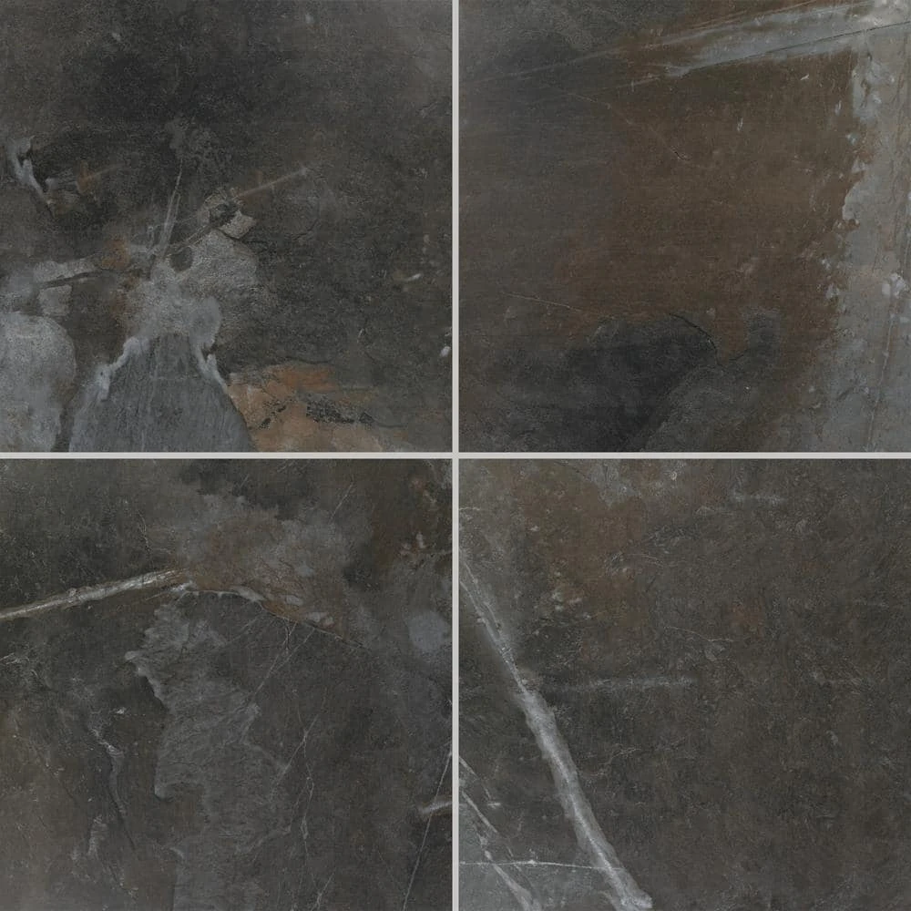 The Highland Shore Graphite 24 in. x 24 in. porcelain tile combines the authentic look of slate with the durability of porcelain. Its dramatic tones and unique texture work together to create a stunning design. This large format tile is perfect for kitchen, bathroom and entryway floors and walls. The rich colors and rustic finish provide the perfect accent piece to complete any space.