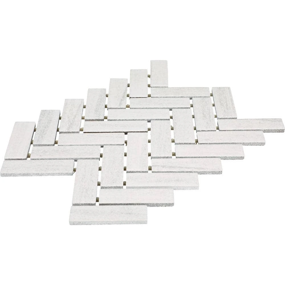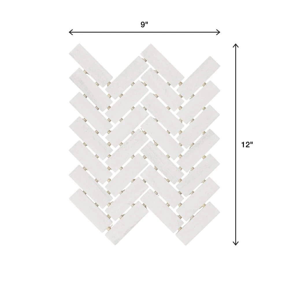 - Actual size: 9 in. width x 12 in. length x 1/4 in. thick; 1 in. W x 3 in. L mosaic pieces in a herringbone pattern