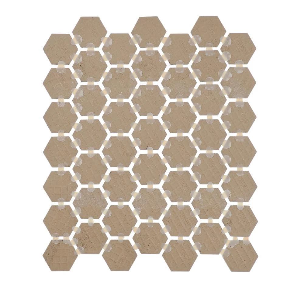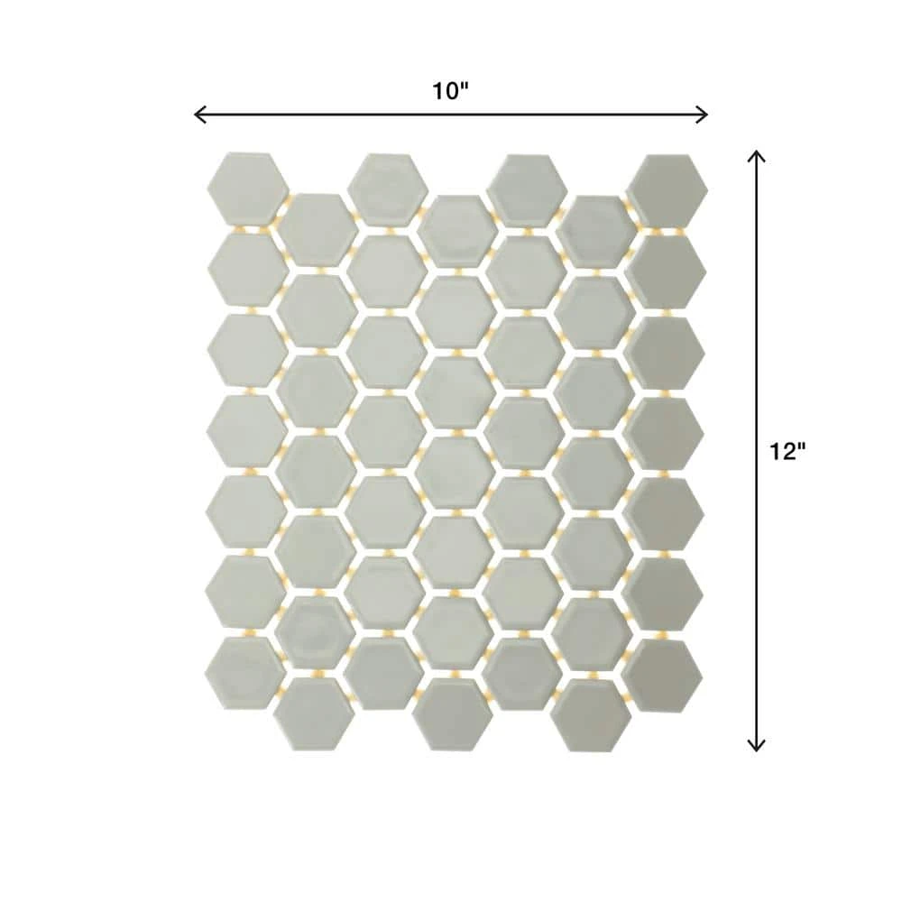 - Actual size: 10-1/4 in. width x 11-5/8 in. length x 1/4 in. thick 1-1/2 in. hexagon mosaic pieces in a honeycomb pattern