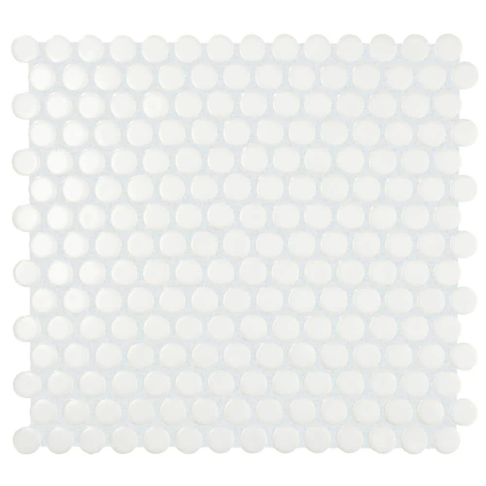 This durable penny round mosaic in satin white is perfect for backsplashes and feature walls in the kitchen, bathroom, shower and more. Its flexible design makes it suitable for many applications, and its unique texture adds dimension to any space. The Restore collection has multiple sizes and shapes to suit just about any ceramic wall tile project.