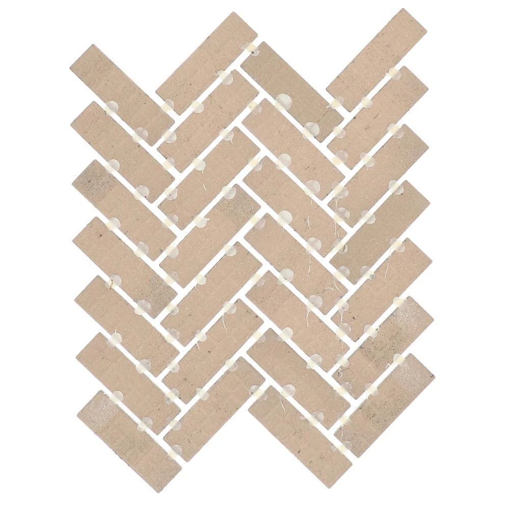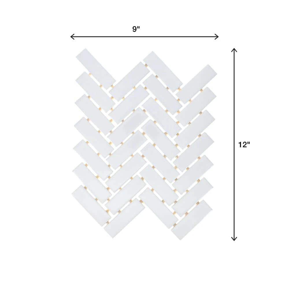 - Actual size: 9 in. width x 12 in. length x 1/4 in. thick. 1 in. W x 3 in. L mosaic pieces in a herringbone pattern