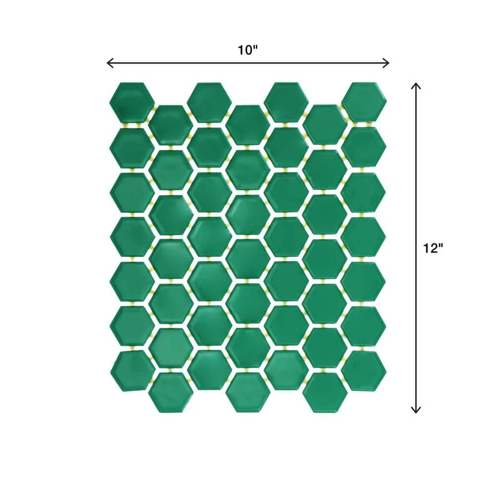 - Actual size: 10-1/4 in. width x 11-5/8 in. length x 1/4 in. thick 1-1/2 in. hexagon mosaic pieces in a honeycomb pattern
