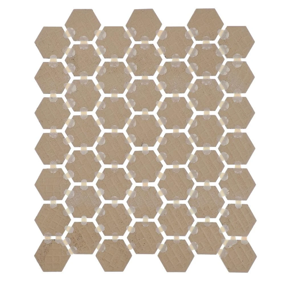 - Actual size: 10-1/4 in. width x 11-5/8 in. length x 1/4 in. thick; 1-1/2 in. hexagon mosaic pieces in a honeycomb pattern
