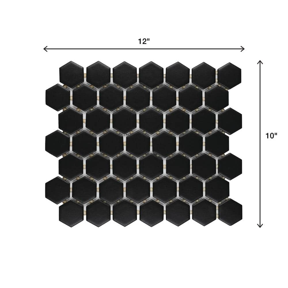 - Actual size: 10-1/4 in. width x 11-3/8 in. length x 1/4 in. thick. 1-1/2 in hexagon mosaic pieces in a honeycomb pattern