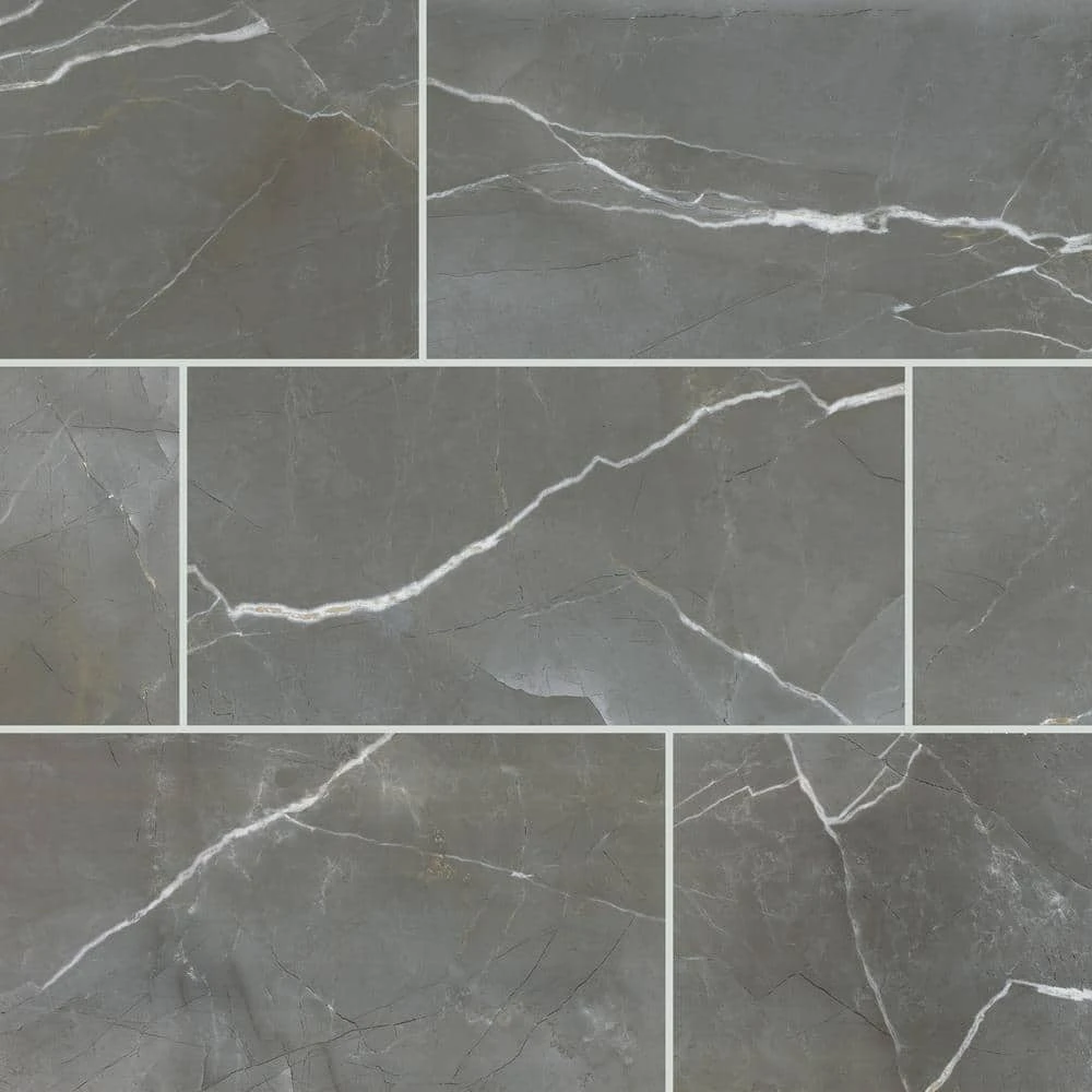 The Rivervale Silver Steel 18 in. x 36 in. ceramic tile is both versatile and durable. This large format tile has an authentic stone look with subtle white veining. Its rich gray tones and simplistic design work together to create the perfect accent piece in any space. Use this product in your kitchen, bathroom, living room or dining room to make a bold statement.