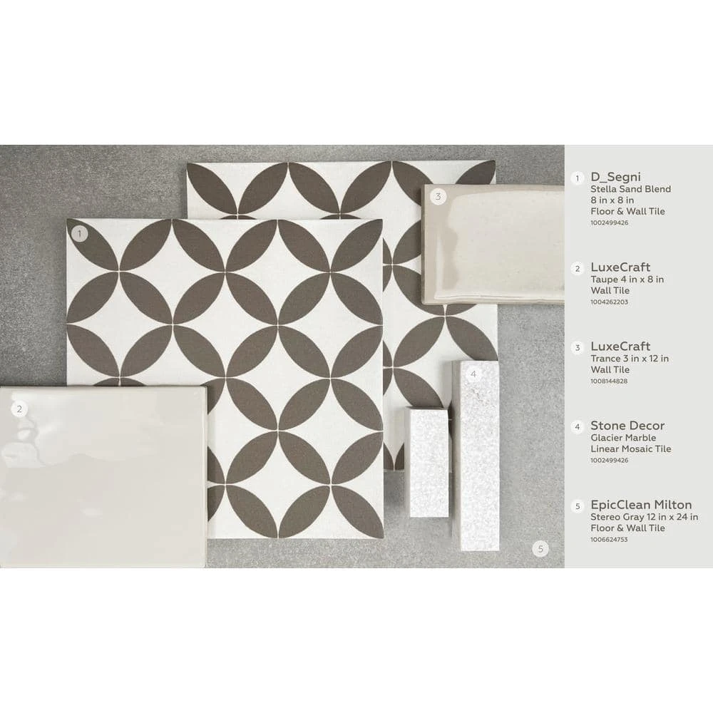 - Don’t forget your coordinating grout, backerboard, thinset and installation tools