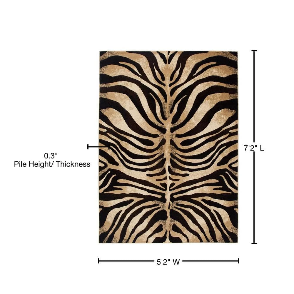 The Home Dynamix Tribeca Collection 5 ft. x 7 ft. Area Rug will offer style and warmth to your home. This rectangular rug has a stain-resistant construction, which allows it to tolerate everyday spills. It is designed with animal print accents, bringing an exotic feel to your floors. Designed with black features, it will tone down your decor. With a 100% polypropylene construction, it will make for an incredibly long-lasting choice for any flooring. This loomed rug has a plush pile, which creates a smooth feel that is a pleasure to walk on.